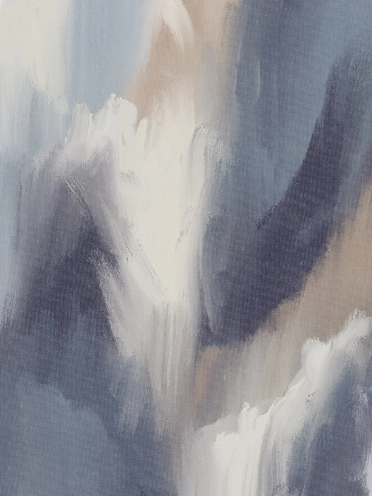 These abstracts are an emotive collection that captures the atmospheric push and pull between stillness and movement, dusk and dawn, quiet and crescendo. Each piece is an intuitive study in expressive brushwork—sweeps of dusty lilac, stormy blue, blushed coral, and soft sand hues evoke a cinematic dreamscape. These artworks are layered with feeling and gesture, drawing on the natural rhythms of sky, sea, and emotion.